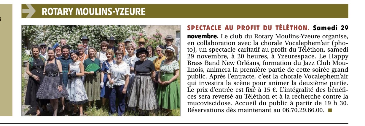 Partenariat avec le ROTARY CLUB Moulins- Yzeure. Téléton 2025